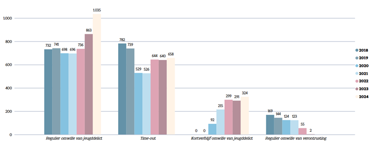 In 2024 kwamen 56 jongeren van 12 en 13 jaar terecht in een gesloten instelling na een jeugddelict, 48 jongeren werden er ondergebracht omwille van een time-out na verontrusting. Dat blijkt uit cijfers van het agentschap Opgroeien. In totaal werden 2.017 opnames geregistreerd in een gemeenschapsinstelling, 12% meer dan in 2023. Om tegemoet te komen aan de stijgende druk op het aantal beschikbare plaatsen, werd de capaciteit van de gesloten jeugdinstelling De Grubbe in Everberg begin oktober opgetrokken. Ook elektronische monitoring voor minderjarigen wordt stapsgewijs verder geïntroduceerd in Vlaanderen.
